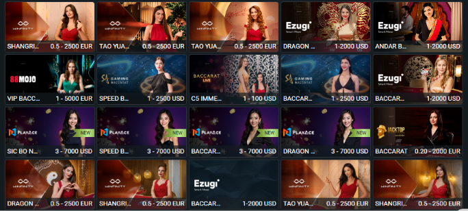Por otra parte, nuestra oferta de casino en vivo cuenta con una excelente selección de blackjack, sic bo y bacará.
